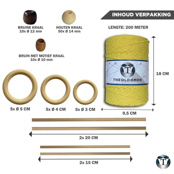 Met dit uitgebreide macramé DIY-Pakket maak je de mooiste macramé decoraties voor in je huis, zoals plantenhangers, een wandkleed, handgeknoopte kussens, tassen of een dromenvanger.